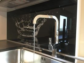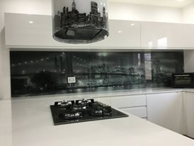Ferrise SRL realizza il para schizzi con il design che preferisce il cliente. In vetro retro verniciato o decorato in digitale su pannelli di vetro temperato, a scelta con illuminazione a led o in resina epossidica senza fughe.